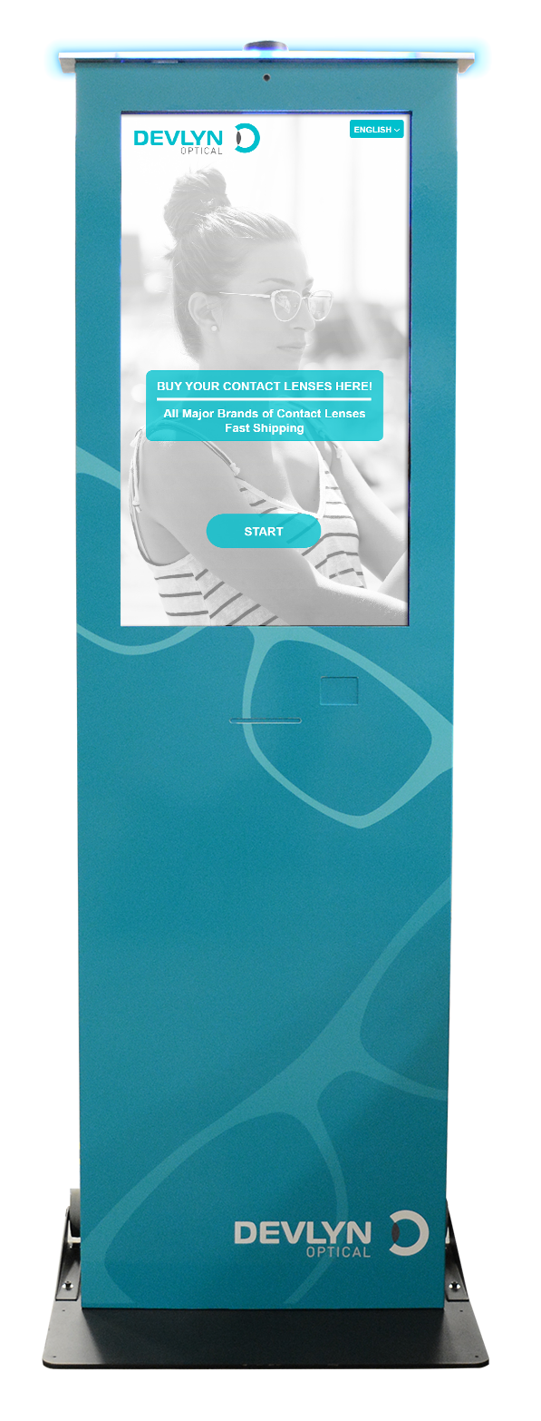 Devlyn Optical implemented an eye-catching Merchant Max kiosk as a self-service retail solution, offering customers the ability to manage their vision needs independently. Installed inside grocery stores for high-visibility access, these kiosks allow users to screen eye health, upload prescriptions, and even purchase glasses or contact lenses without staff assistance.